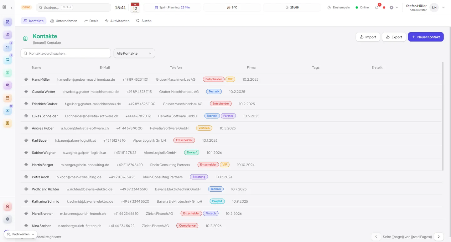 Deine All-in-One Business Platform. CRM, Chat, Projektmanagement, Finanzen — alles in einer modularen Software, die sich deinem Unternehmen anpasst.